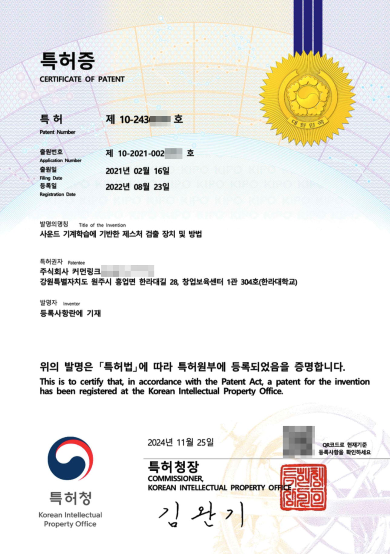 Patent Certificate
