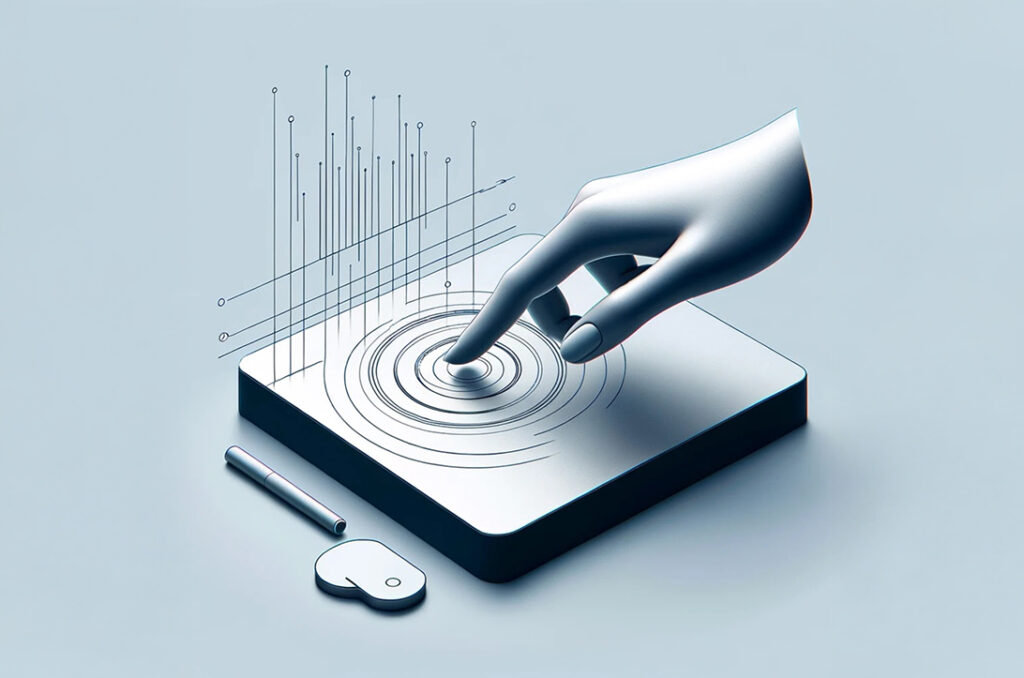 Small gestures become commands without pressing buttons or screens. When sound vibrations from the surface reach the product, two built-in microphones analyze the signal to recognize the letters and patterns drawn by the user